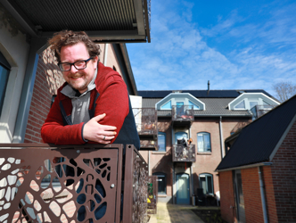 “Area vroeg via de mail of wij als bewoners wilden meedenken en meehelpen”, zegt Roland Martinez van der Sangen. Sinds vier jaar woont hij in een appartement op de bovenste verdieping. Vanuit zijn woonkamer kijkt hij uit op de binnentuin. Daar was een opknapbeurt hard nodig, vond hij. “Twee dames die hier wonen namen hiertoe het initiatief. Ik vond het wel leuk om mee te helpen. Met veel mensen die bij elkaar leven komt er wel het een en ander kijken om samen iets te doen. Daarvoor moet iemand de kar trekken.”